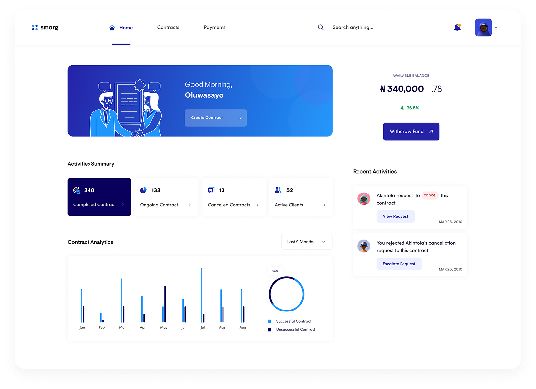 Smarg is a remote contract facilitator that aims to secure, manage and ensure quality delivery for freelancers